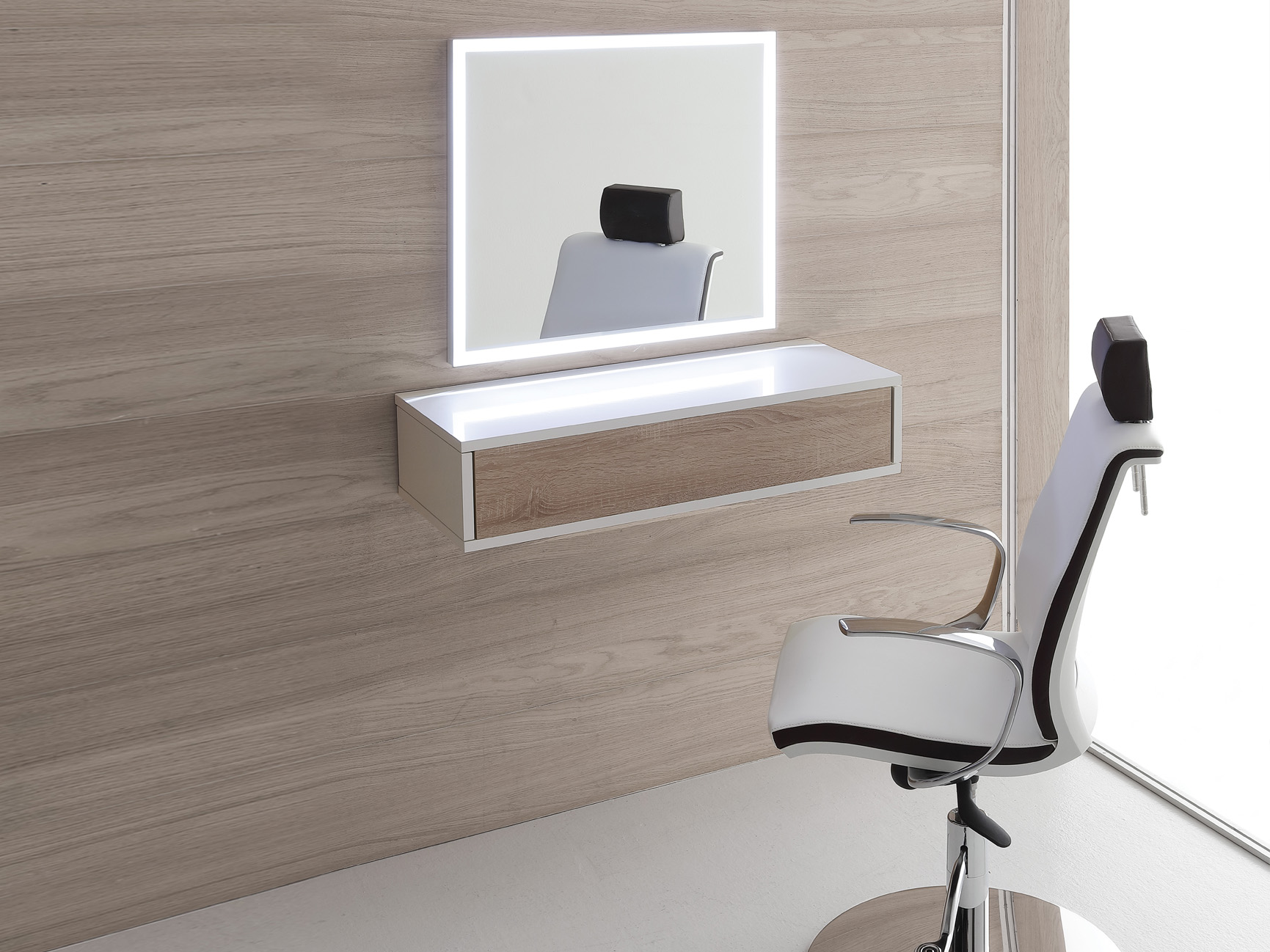 Красивое и функциональное зеркало для визажа «Make up» выполнено в минималистическом стиле. Алюминиевая рама окрашена в белый цвет. Для того чтобы свет равномерно распределялся, используются светодиодные светильники высокой мощности, которые распределены по периметру всего зеркала. Свет холодный.